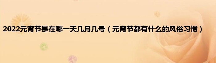 大家好,2022元宵节是在哪一天几月几号,元宵节都有什么的风俗习惯很多人还不知道,现在让我们一起来看看吧!
