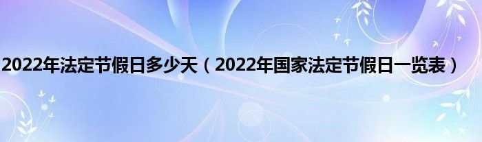 本文,2022年法定节假日多少天,2022年国家法定节假日一览表到此就分享完毕,希望对大家有所帮助。
