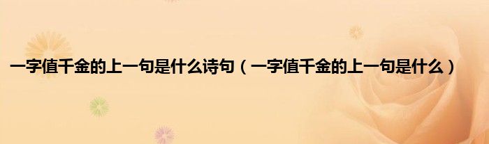 本文,一字值千金的上一句是什么诗句,一字值千金的上一句是什么到此就分享完毕,希望对大家有所帮助。