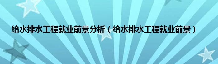 以上就是【给水排水工程就业前景分析,给水排水工程就业前景】相关内容。