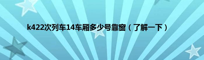本文,k422次列车14车厢多少号靠窗,了解一下到此就分享完毕,希望对大家有所帮助。