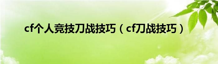 以上就是【cf个人竞技刀战技巧,cf刀战技巧】相关内容。