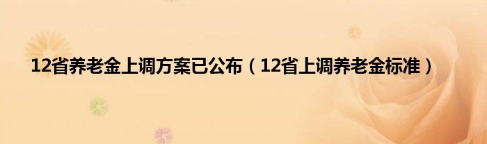 大家好,12省养老金上调方案已公布,12省上调养老金标准很多人还不知道,现在让我们一起来看看吧!
