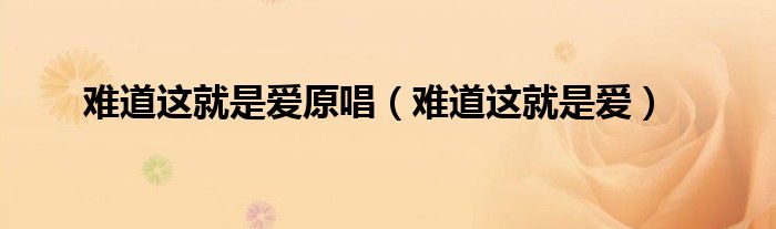 以上就是【难道这就是爱原唱,难道这就是爱】相关内容。