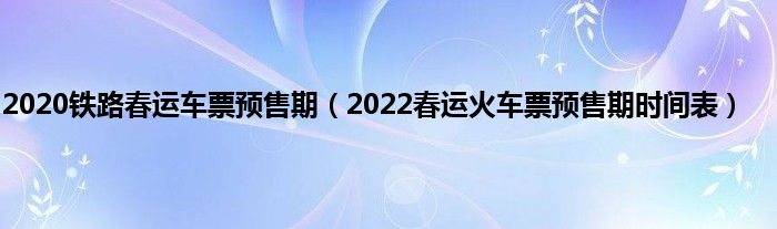 本文,2020铁路春运车票预售期,2022春运火车票预售期时间表到此就分享完毕,希望对大家有所帮助。