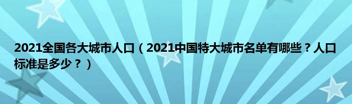 大家好,2021全国各大城市人口,2021中国特大城市名单有哪些?人口标准是多少?很多人还不知道,现在让我们一起来看看吧!