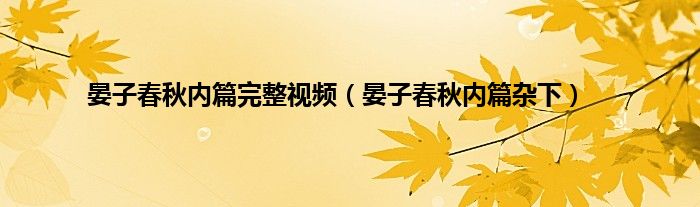 大家好,小问来为大家解答以上问题。晏子春秋内篇完整视频,晏子春秋内篇杂下这个很多人还不知道,现在让我们一起来看看吧!