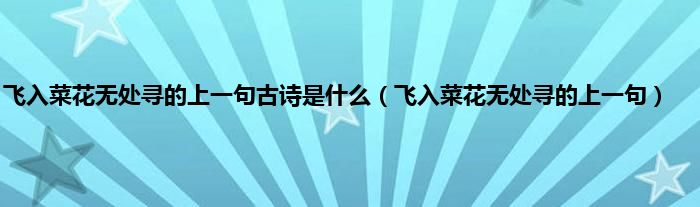 以上就是【飞入菜花无处寻的上一句古诗是什么,飞入菜花无处寻的上一句】相关内容。