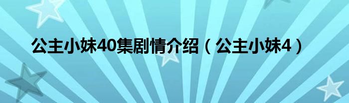 大家好,小问来为大家解答以上问题。公主小妹40集剧情介绍,公主小妹4这个很多人还不知道,现在让我们一起来看看吧!