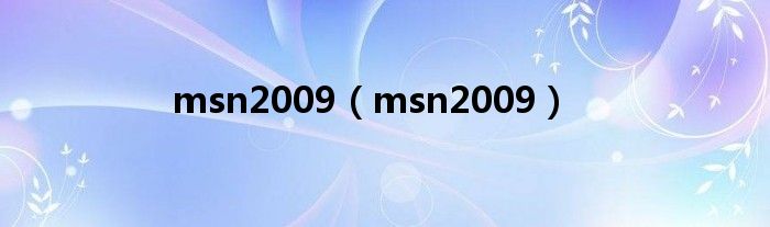 大家好,小问来为大家解答以上问题。msn2009,msn2009这个很多人还不知道,现在让我们一起来看看吧!
