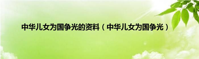 以上就是【中华儿女为国争光的资料,中华儿女为国争光】相关内容。
