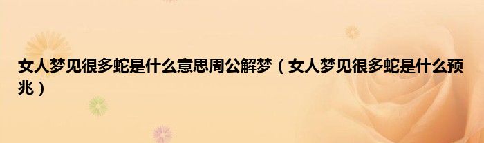 大家好,综合小编来为大家讲解下。女人梦见很多蛇是什么意思周公解梦,女人梦见很多蛇是什么预兆这个很多人还不知道,现在让我们一起来看看吧!