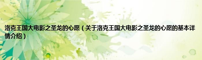 本文关于洛克王国大电影之圣龙的心愿的基本详情介绍就讲解完毕,希望对大家有所帮助。