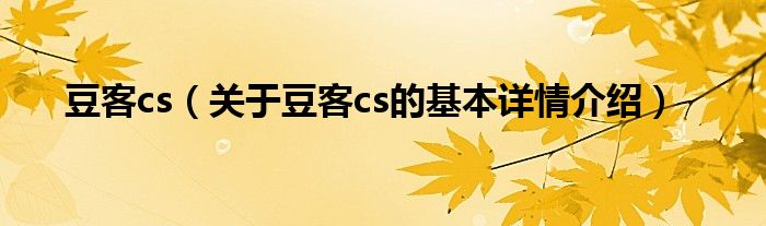 本文关于豆客cs的基本详情介绍就讲解完毕,希望对大家有所帮助。