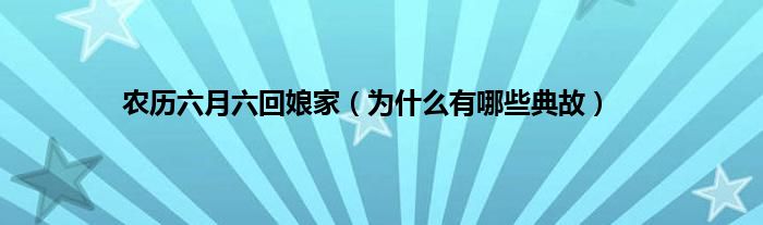 大家好,综合小编来为大家讲解下。农历六月六回娘家,为什么有哪些典故这个很多人还不知道,现在让我们一起来看看吧!
