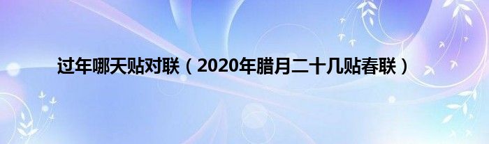 二、2020年腊月二十几贴春联:  过年贴春联,是中国的传统习俗。各地的习俗不同,贴春联的时间也有差别,从腊月的二十三,小年开始,到大年三十,陆陆续续有人贴春联。一般来说,腊月二十八、二十九,是集中贴春联的时间。
