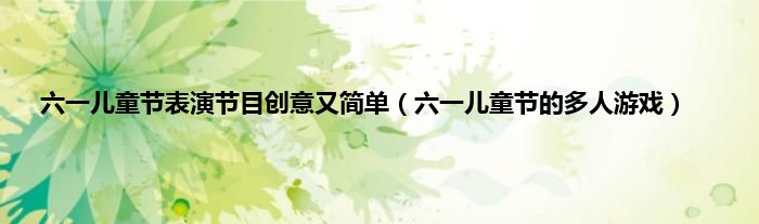 本文六一儿童节表演节目创意又简单,六一儿童节的多人游戏到此分享完毕,希望对大家有所帮助。