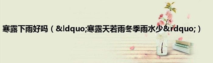 大家好,综合小编来为大家讲解下。寒露下雨好吗,“寒露天若雨冬季雨水少”这个很多人还不知道,现在让我们一起来看看吧!