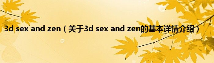 本文关于3d sex and zen的基本详情介绍就讲解完毕,希望对大家有所帮助。
