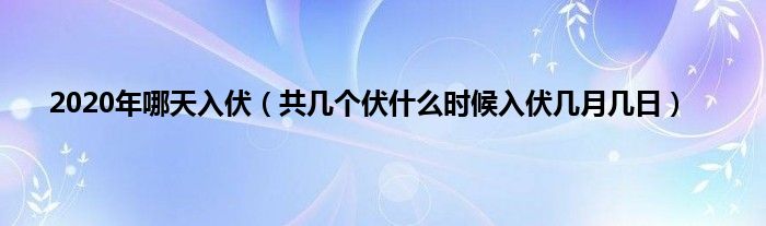 大家好,综合小编来为大家讲解下。2020年哪天入伏,共几个伏什么时候入伏几月几日这个很多人还不知道,现在让我们一起来看看吧!