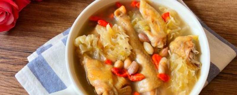 胡萝卜银耳鸡汤不要放白糖,放盐即可。胡萝卜银耳鸡汤是一道由胡萝卜、银耳、母鸡等做成的美食。陈皮、罗汉果与肉加水先煮,水开后撇掉浮沫。加银耳慢火熬一小时,最后加进胡萝卜直至银耳成胶状放盐调味即可。白糖是由甘蔗和甜菜榨出的糖蜜制成的精糖。白糖色白、干净、甜度高。白糖含有糖类,糖类是人体主要营养来源之一。人体的消耗要以糖类氧化后产生的热能来维持。人体活动所需的能量大约有70%是靠糖类供给的。根据制糖工艺的不同,甘蔗白砂糖可分为硫化糖和碳化糖。