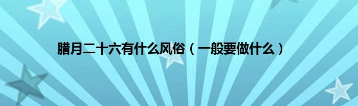 大家好,综合小编来为大家讲解下。腊月二十六有什么风俗,一般要做什么这个很多人还不知道,现在让我们一起来看看吧!
