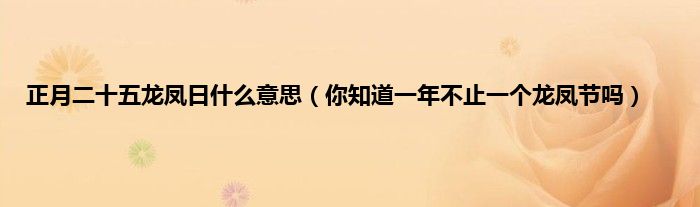 本文正月二十五龙凤日什么意思,你知道一年不止一个龙凤节吗到此分享完毕,希望对大家有所帮助。