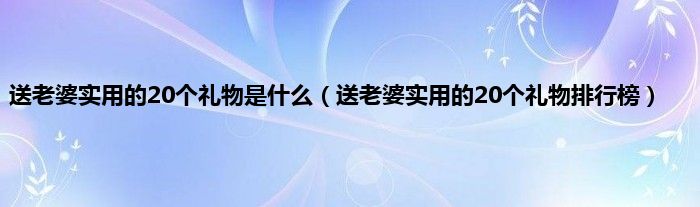 大家好,综合小编来为大家讲解下。送老婆实用的20个礼物是什么,送老婆实用的20个礼物排行榜这个很多人还不知道,现在让我们一起来看看吧!