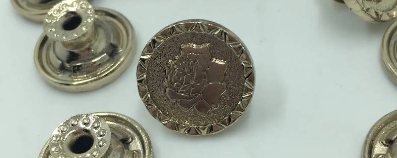 左边是底右边是帽,底穿透衣服,这种扣子叫摇头扣,是要专门的模具压的,一般钉扣子的地方都可以钉。很多牛仔服饰上面都会用摇头扣。摇头扣在衣服上钉得比较牢,只是在拆卸的时候相比一般的扣子要困难一些。在古罗马,最初的纽扣是用来做装饰品的,而系衣服用的是饰针。13世纪纽扣的作用才与今天相同。那时人们已懂得在衣服上开扣眼,这种做法提高了纽扣的实用价值。16世纪,纽扣得到了普及。