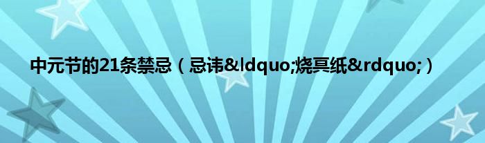 大家好,综合小编来为大家讲解下。中元节的21条禁忌,忌讳“烧冥纸”这个很多人还不知道,现在让我们一起来看看吧!
