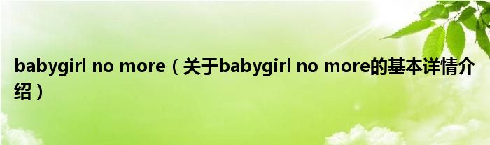 本文关于babygirl no more的基本详情介绍就讲解完毕,希望对大家有所帮助。