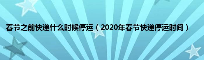 大家好,综合小编来为大家讲解下。春节之前快递什么时候停运,2020年春节快递停运时间这个很多人还不知道,现在让我们一起来看看吧!