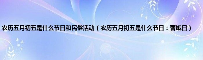 大家好,综合小编来为大家讲解下。农历五月初五是什么节日和民俗活动,农历五月初五是什么节日:曹娥日这个很多人还不知道,现在让我们一起来看看吧!