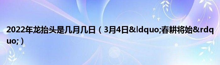 大家好,综合小编来为大家讲解下。2022年龙抬头是几月几日,3月4日“春耕将始”这个很多人还不知道,现在让我们一起来看看吧!