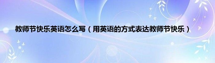 大家好,综合小编来为大家讲解下。教师节快乐英语怎么写,用英语的方式表达教师节快乐这个很多人还不知道,现在让我们一起来看看吧!