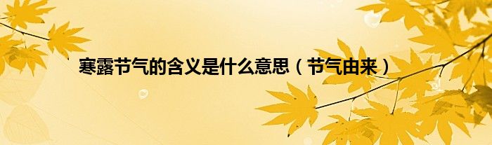 大家好,综合小编来为大家讲解下。寒露节气的含义是什么意思,节气由来这个很多人还不知道,现在让我们一起来看看吧!