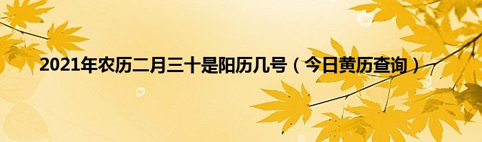大家好,综合小编来为大家讲解下。2021年农历二月三十是阳历几号,今日黄历查询这个很多人还不知道,现在让我们一起来看看吧!