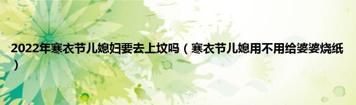 大家好,综合小编来为大家讲解下。2022年寒衣节儿媳妇要去上坟吗,寒衣节儿媳用不用给婆婆烧纸这个很多人还不知道,现在让我们一起来看看吧!