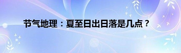 大家好,综合小编来为大家讲解下。节气地理:夏至日出日落是几点?这个很多人还不知道,现在让我们一起来看看吧!
