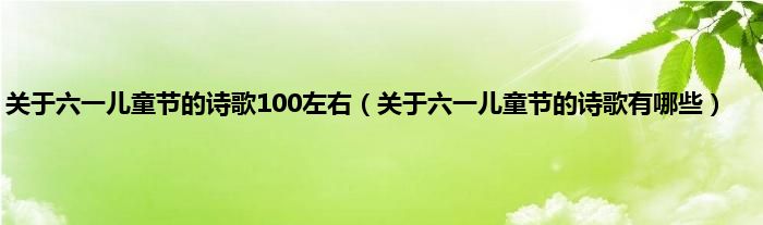 本文关于六一儿童节的诗歌100左右,关于六一儿童节的诗歌有哪些到此分享完毕,希望对大家有所帮助。