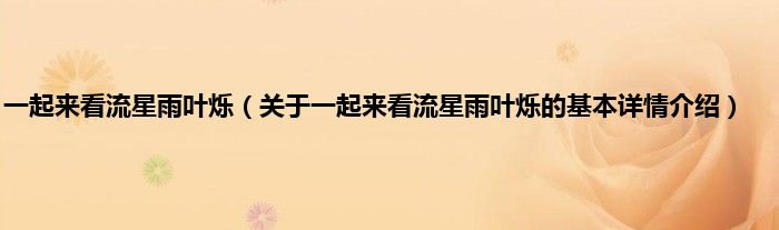 大家好我是小蝌蚪,一起来看流星雨叶烁,关于一起来看流星雨叶烁的基本详情介绍很多人还不知道,那么现在让我们一起来看看吧!