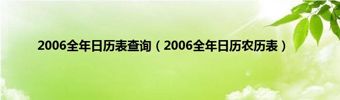 大家好,综合小编来为大家讲解下。2006全年日历表查询,2006全年日历农历表这个很多人还不知道,现在让我们一起来看看吧!