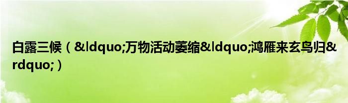 大家好,综合小编来为大家讲解下。白露三候,“万物活动萎缩“鸿雁来玄鸟归”这个很多人还不知道,现在让我们一起来看看吧!