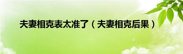 大家好,综合小编来为大家讲解下。夫妻相克表太准了,夫妻相克后果这个很多人还不知道,现在让我们一起来看看吧!