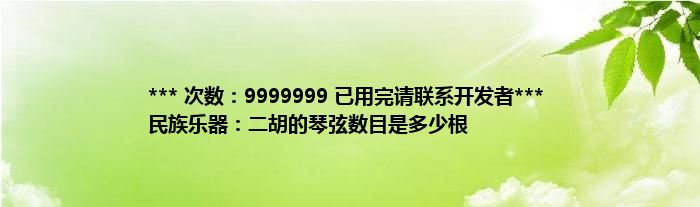 本文*** 次数:9999999 已用完请联系开发者*** 民族乐器:二胡的琴弦数目是多少根到此分享完毕,希望对大家有所帮助。