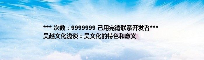 大家好,综合小编来为大家讲解下。*** 次数:9999999 已用完请联系开发者*** 吴越文化浅谈:吴文化的特色和意义这个很多人还不知道,现在让我们一起来看看吧!