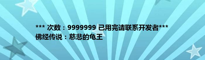 大家好,综合小编来为大家讲解下。*** 次数:9999999 已用完请联系开发者*** 佛经传说:慈悲的龟王这个很多人还不知道,现在让我们一起来看看吧!