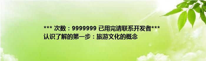 本文*** 次数:9999999 已用完请联系开发者*** 认识了解的第一步:旅游文化的概念到此分享完毕,希望对大家有所帮助。