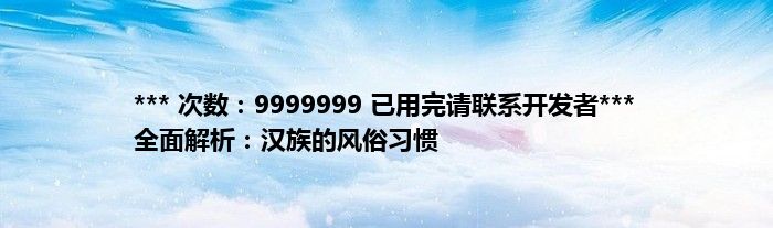 大家好,综合小编来为大家讲解下。*** 次数:9999999 已用完请联系开发者*** 全面解析:汉族的风俗习惯这个很多人还不知道,现在让我们一起来看看吧!