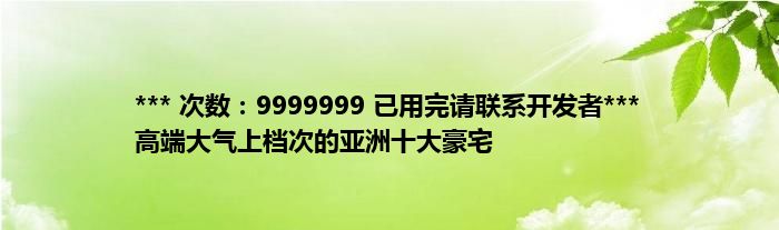 大家好,综合小编来为大家讲解下。*** 次数:9999999 已用完请联系开发者*** 高端大气上档次的亚洲十大豪宅这个很多人还不知道,现在让我们一起来看看吧!